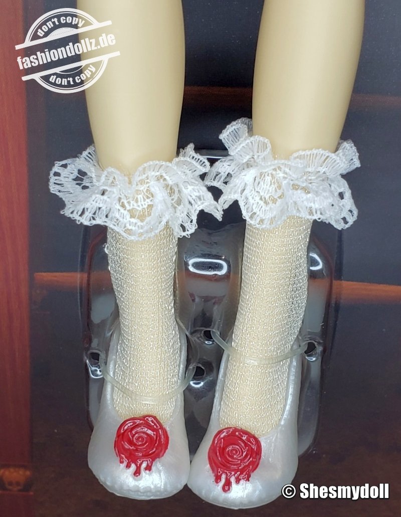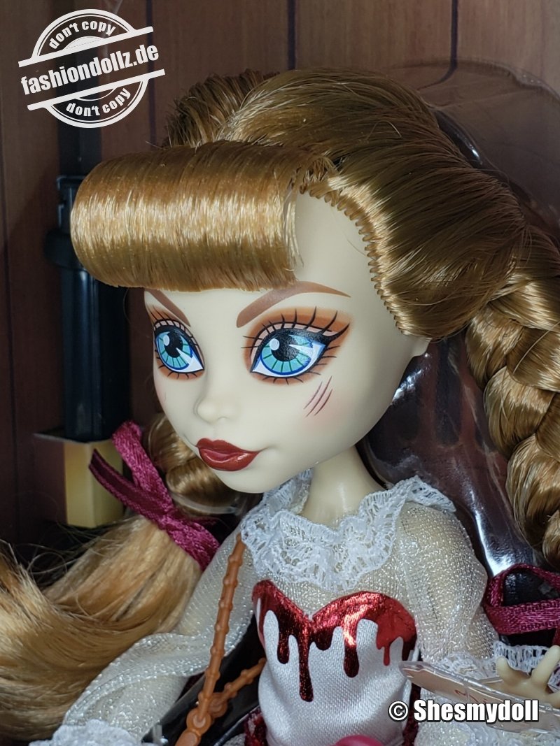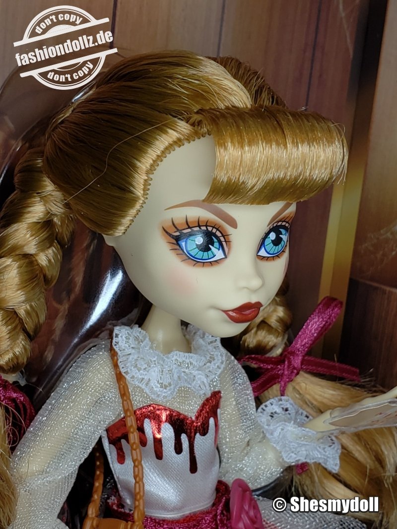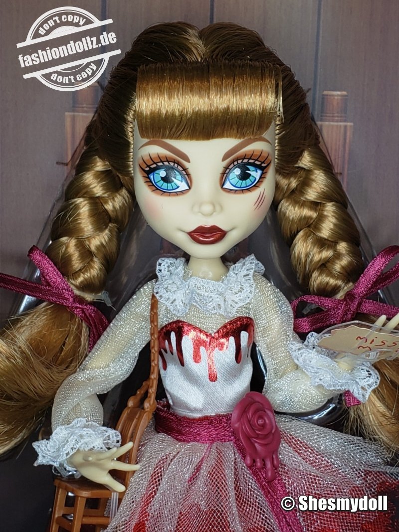 Annabelle ist eine von Dämonen besessene Puppe, die 2014 im gleichnamigen Horrorfilm eine junge Mutter und ihre Tochter terrorisiert. Mattel brachte 2023 in der Skullector Reihe eine Annabelle Monster High Puppe heraus, die (glücklicherweise) nicht ganz so horrormäßig aussieht, wie die Filmfigur.