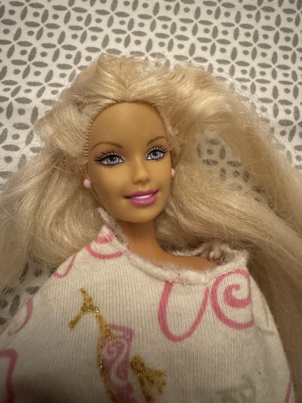 She looks like she has the same face as 2008 Barbie for president, but her arms have this bend. They don’t go over her head like a ballerina, and hands do not face the right direction to hold horse reigns or bike. I’m stumped! Bought at a garage sale so not positive it’s the original hairstyle